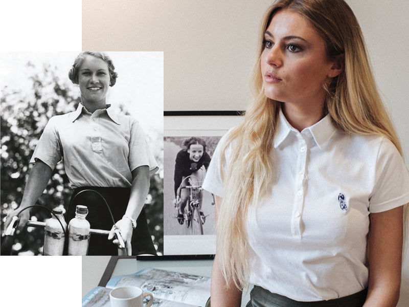 The EMBLEME polo shirt is inspired by the myth of the Climber and a specific technique specific to the climber "as a dancer": this position with its graceful hip movement and harmony; this reference already associates cycling with women.