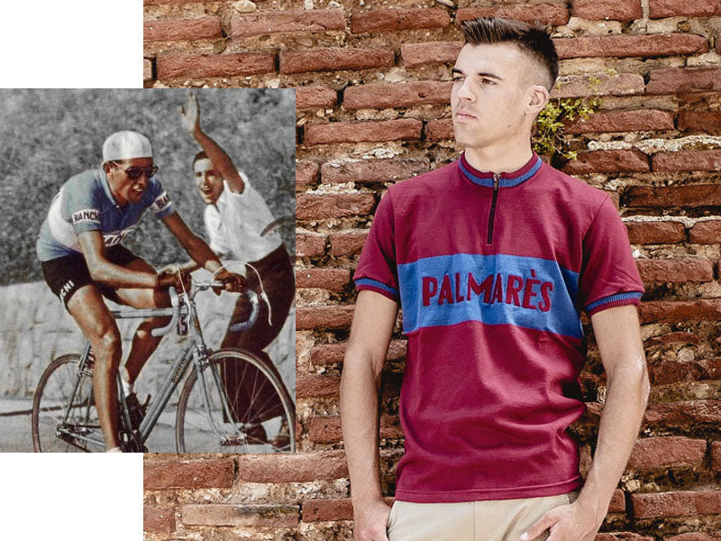 Dès 1945 il arbora le vieux maillot de cyclisme BIANCHI pendant plus de 10 ans et a inspiré Palmarès pour créer LE FAUSTO BORDEAUX : son célèbre maillot BIANCHI bleu ciel avec une large bande blanche sur la poitrine ou était imprimé le nom du sponsor (la célèbre marque italienne de vélo BIANCHI) présentait un col rond bord cote deux et deux, doté d’une fermeture éclair et des bords cotes deux et deux bicolores aux extrémités des manches courtes.
