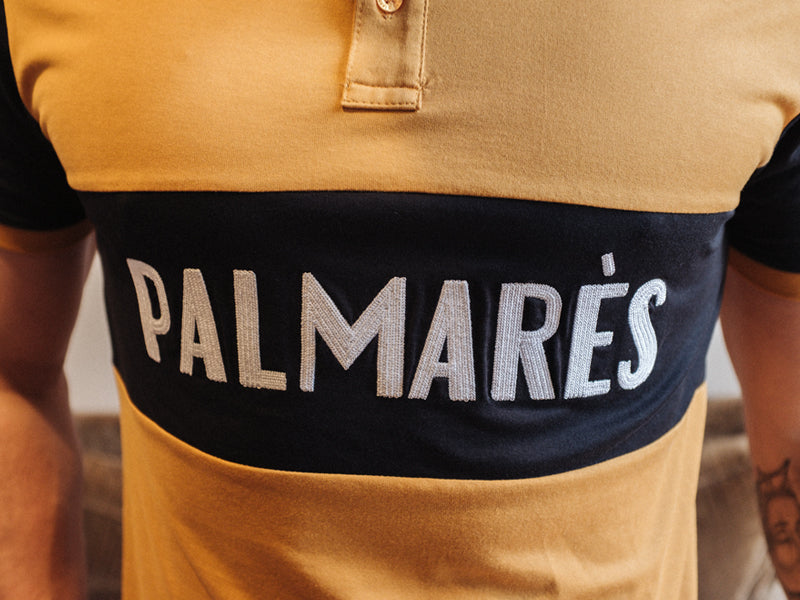 La broderie du logo cycliste Palmarès est cousue sur le bas de la manche gauche.