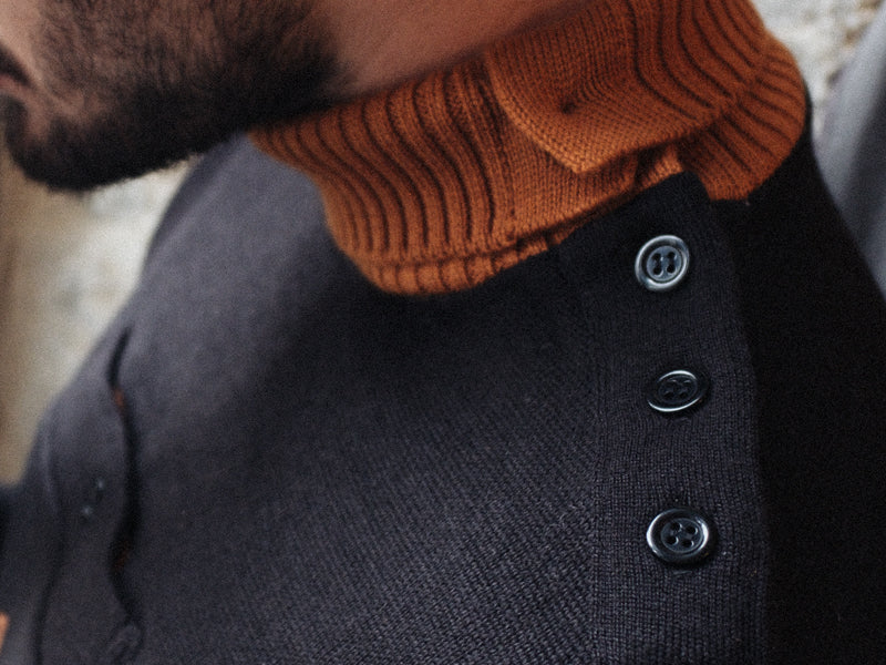 Ce col roulé peut se porter ouvert ce qui lui confère un coté plus casual.